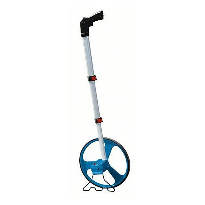 The Bosch GWM32 professional measuring wheel has been manufactured with a telescopic aluminium construction that can be adjusted to comfortably suit the users height. The wheel itself has been carefully die cast from aluminium with a robust rubber tread making it ideal for use on any surface. The counter is protected in its impact resistant plastic house and capable of reading up to 9999.9 metres.