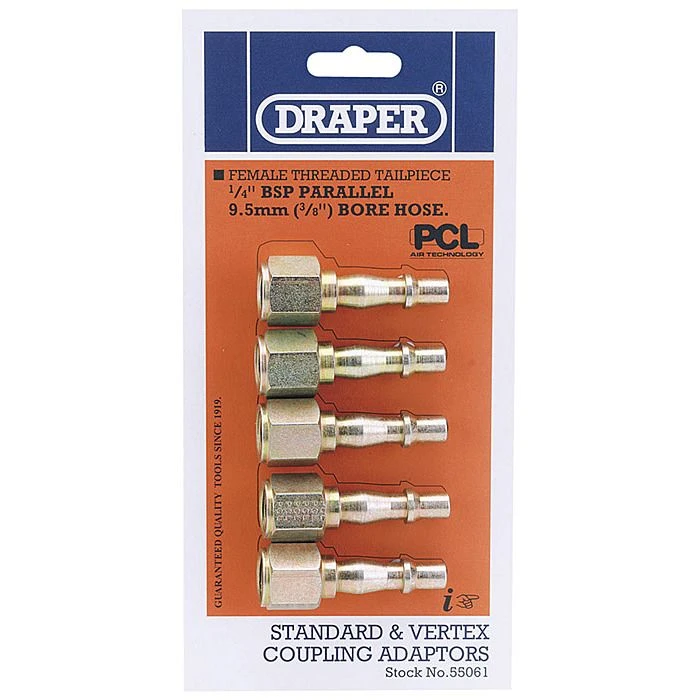 1/4 Inch Female PCL Coupling Screw Adaptor Tail Piece, Draper 55061 – Pack of 5 or Single