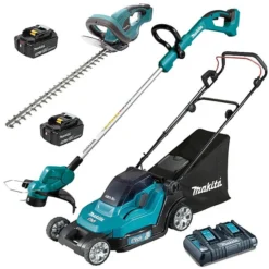Makita 18V LXT Lawnmower, Strimmer & Hedgetrimmer – 2 X 5.0Ah Batteries